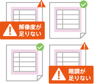 - スキャンした画像データにも解像度などの要件が求められます。これらは目視で確認することはほぼ不可能となりますので、システムで自動的にチェックできる必要があります。