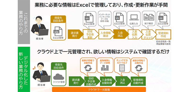 会計システムや人事労務システムでは、すでにデジタル化への対応が進んでいますが、販売管理システムは長く「手作業があること」が前提になって開発されてきたため、市場で提供されている多くのタイプは「デジタルデータを生かし切る」仕組みになりきれていません。しかし、今後は販売管理システムにおいても「業務のデジタル化」への対応が必須となります。