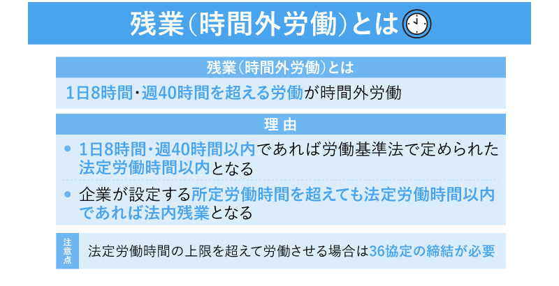 法定労働時間は「1日8時間・1週40時間」であり、これを超える労働が時間外労働として規制対象になります。