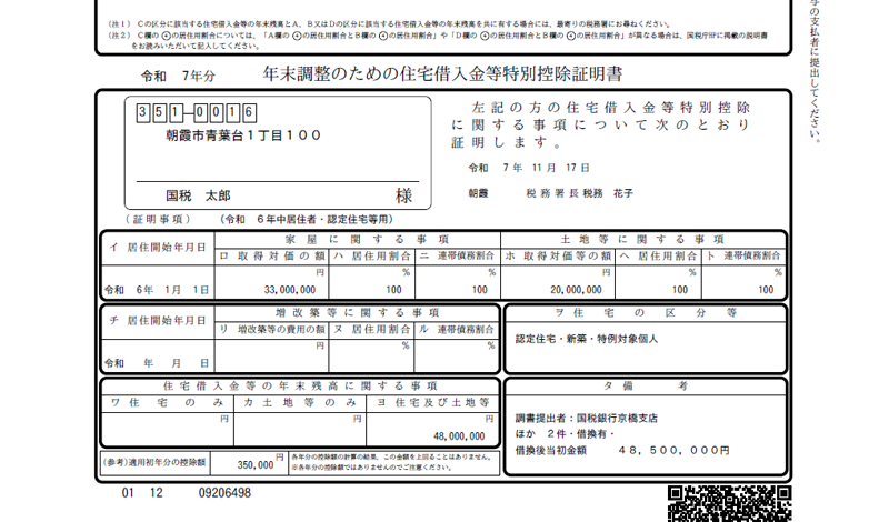 申告書に記載された残高と、金融機関が発行した残高証明書の金額が一致しているか、必ず確認しましょう。少額の誤りでも控除額に直接影響するため、見逃すと税額計算に誤差が生じます。