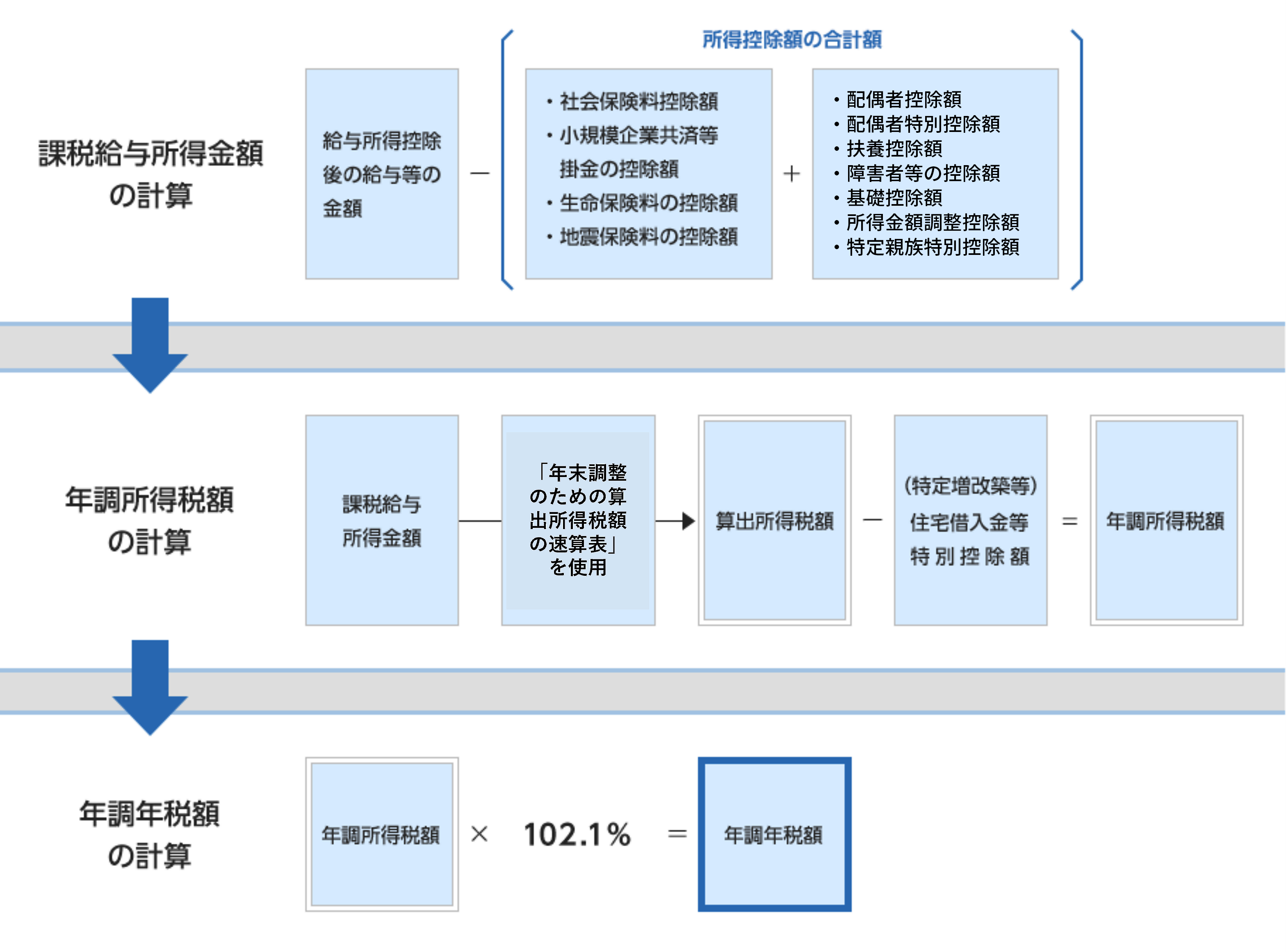 年末調整計算を手計算する場合は、次のような流れで行います。