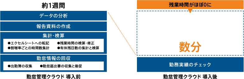 また、集計から確認までがほぼ自動化され、これまで1週間かけていた残業時間や残業代の集計作業が、導入して2か月後には数分のチェック作業だけで済むようになったそうです。今では、勤怠管理は「締め作業」ではなく「日常運用」で管理できるようになり、担当者からは、「あまりにも楽なので、“今までの苦労はいったい何だったのだろう”と思ってしまう」という感想まで出ているそうです。