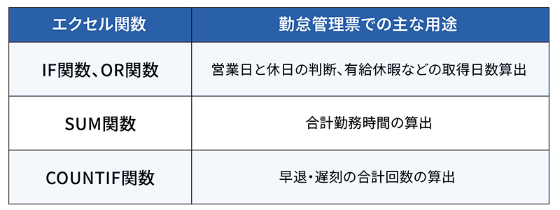 勤怠管理に使用する具体的な関数の設定方法や活用例については、次の章で詳しく紹介します。以下は、勤怠管理で使用する主な関数の一覧です。