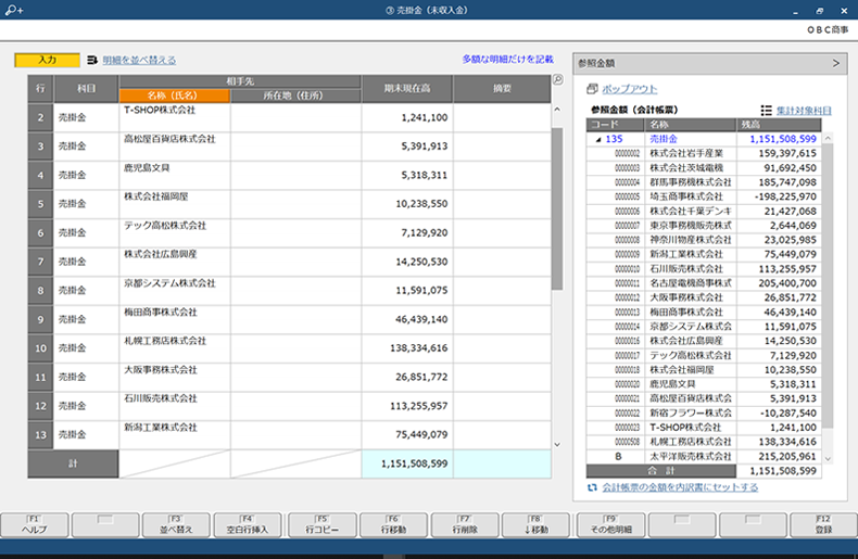 合計行の挿入やその他明細への移動、明細行の並べ替えなどのレイアウト調整も簡単で、自社に合わせた帳票イメージに瞬時に変更できます。売掛金や手形などの内訳書の金額から自動判定し、50万円未満は「その他」に集約するなど、レイアウト調整の手間も削減できます。