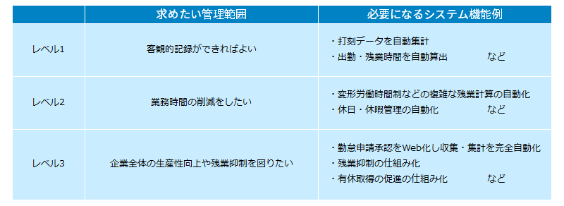 ② 目指す勤怠管理の「管理レベル」に合っているか