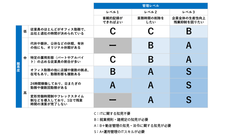 <管理レベル・設定難易度別に見る勤怠管理システムの導入ランク>