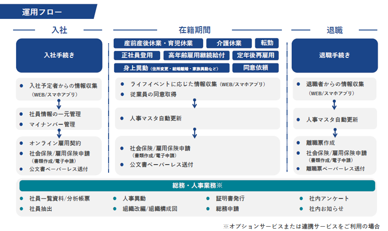 入社、退職、働き方の変更といったイベントが発生した時点で、社会保険手続きに必要な情報が自然に揃う環境を整えることができれば、確認や転記に追われる場面は大きく減ります。