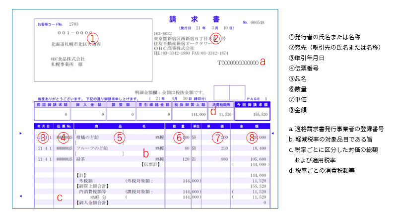 また、同一商品で異なる税率が適用される場合には、税率ごとに明細を区分して記載する必要があります。
