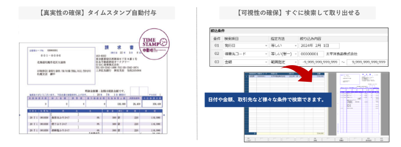- 可視性の確保(税務調査時に画面や書面で速やかに出力できること)