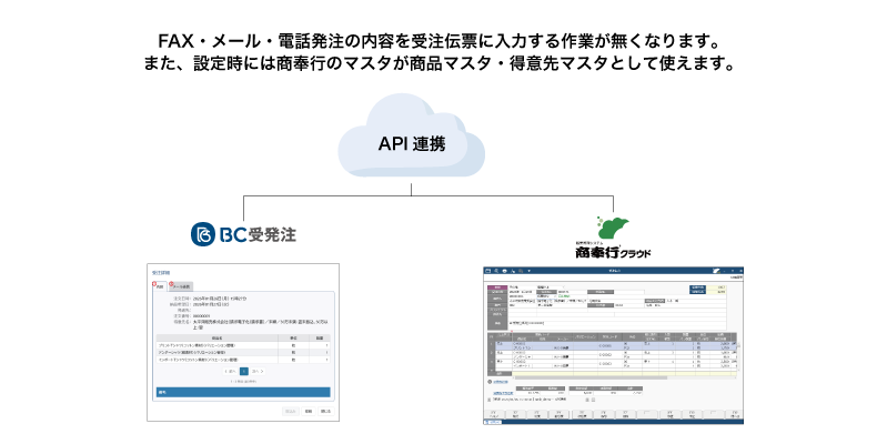手作業の受注作業は時間がかかり、ミスにもつながる。 BC受発注との連携で 商奉行で注文が受け取れるようになります。 受注伝票の手入力を無くす カシオの受発注サービス 販売管理連携 BC受発注