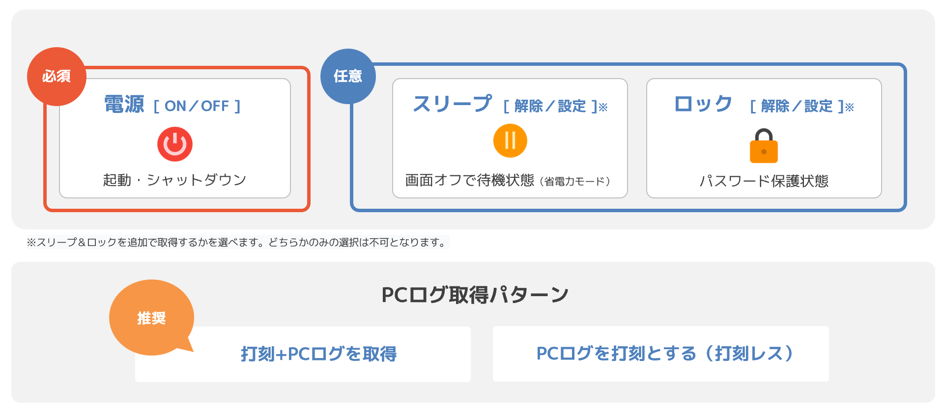 PCログは以下の操作で都度取得。 PCログ取得パターンは2種類から選べます!