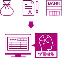 領収書や入出金明細データを学習し、取引入力を自動化します。