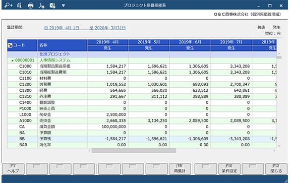 - プロジェクト原価推移表