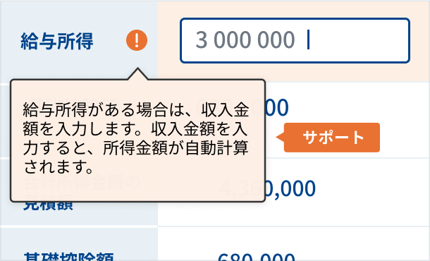 入力ミスを防ぐサポート機能で 申告ミスが0に!