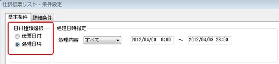 日付種類選択の「伝票日付」と「処理日時」の違いはなに?