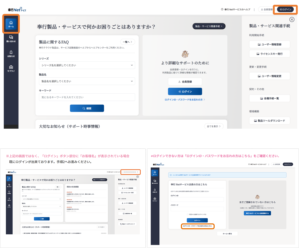 ※グループ会社向け製品(登録番号の1桁目が「M」「N」「D」「F」「H」 但し、3桁目が「H」は除く)は、Webでお手続きができません。