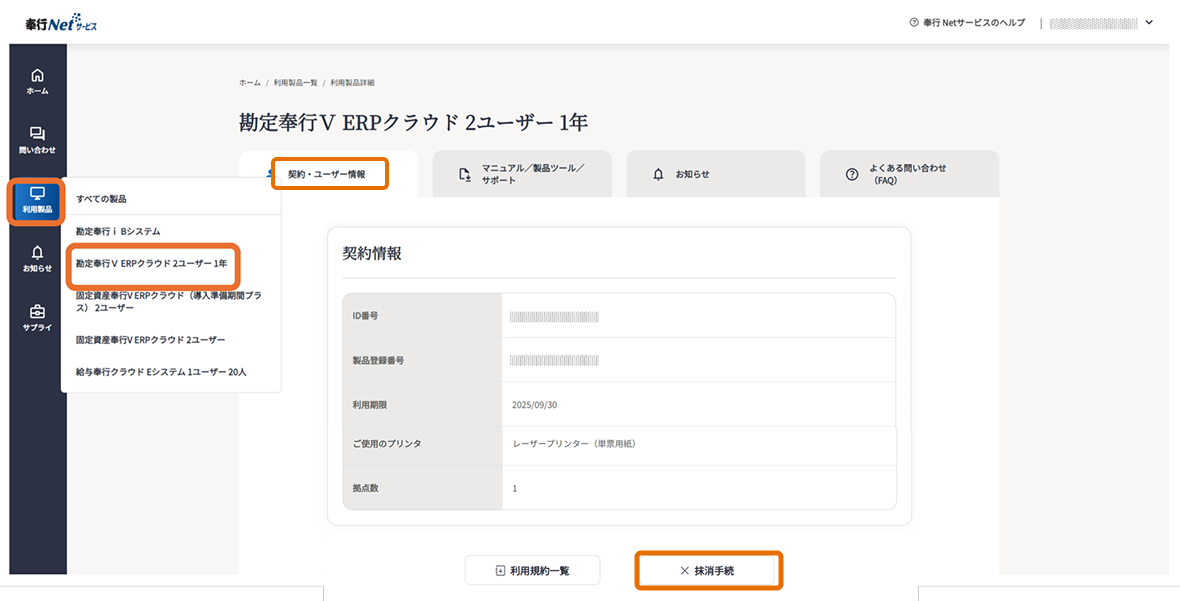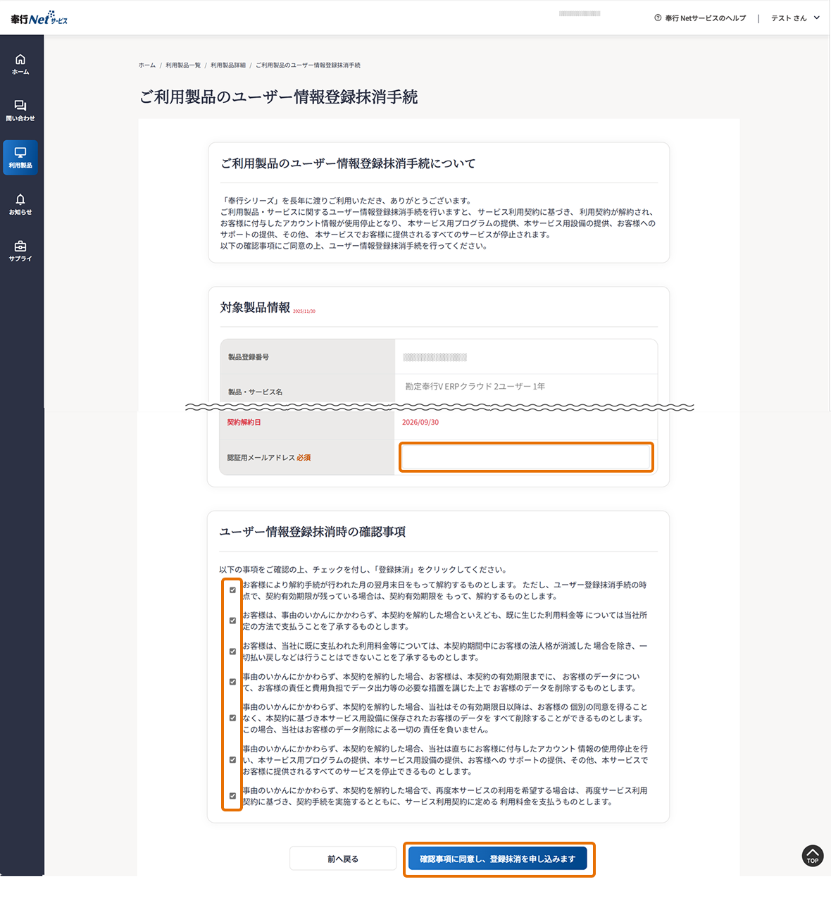 ※ユーザー登録情報の抹消手続きを行いますと、弊社からの各種案内・サービスが停止され、サポートセンターへのご質問等も