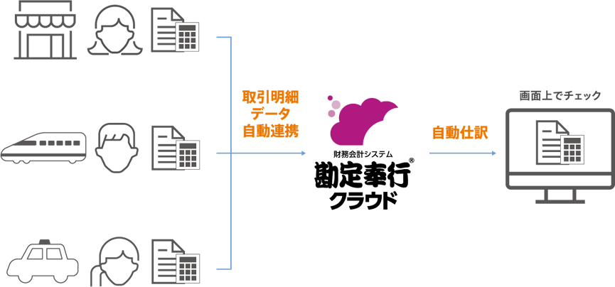 経費精算を電子化できる仕組みと勘定奉行クラウドとの連動で、仕訳レスの経理業務に変わります。