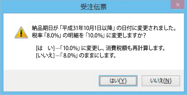 - 伝票日付を修正した際も、確認メッセージの表示で安心
