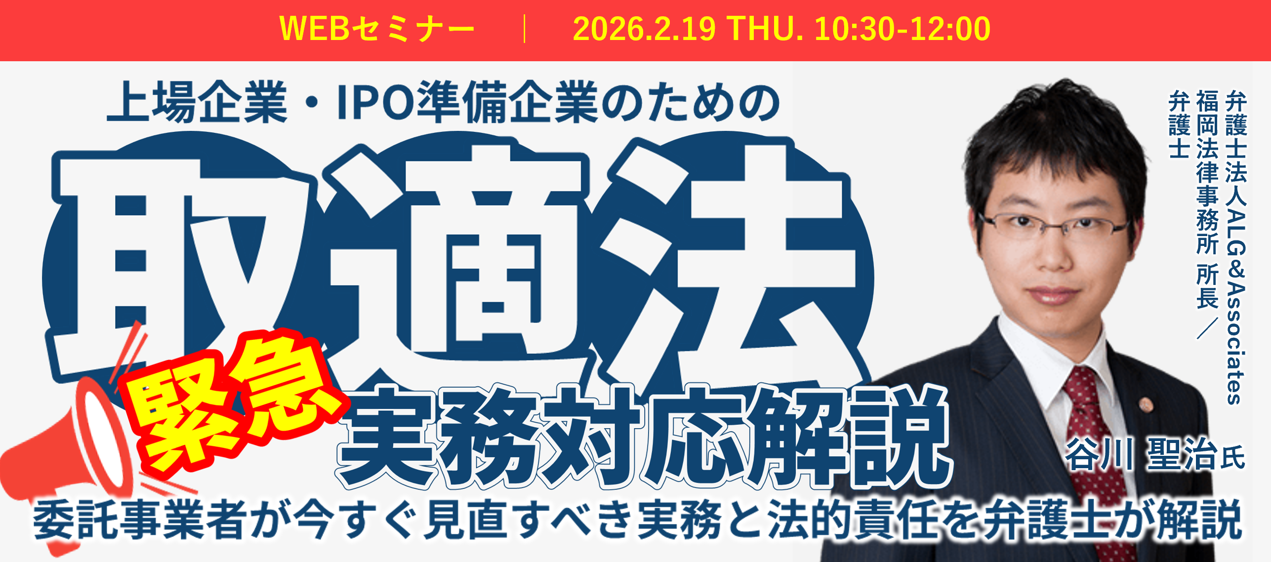本セミナーでは、企業法務を専門とする弁護士が、法的観点から本法改正を精緻に読み解きます。過去の公表例を参考としながら立法趣旨に基づき、行政処分や企業名公表のリスクを回避するための、具体的かつ緊急性の高い実務対応策を提示します。