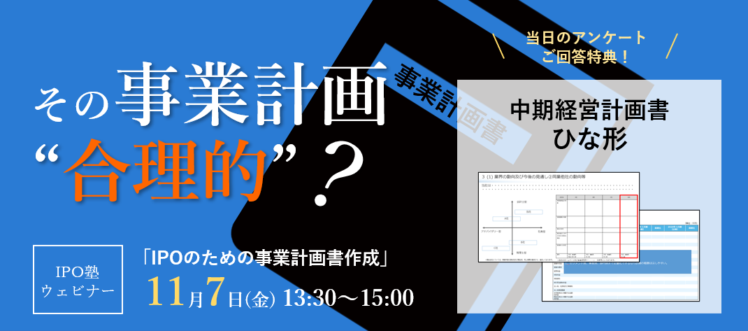 本セミナーでは、IPO時に求められる事業計画書のつくり方を具体的に解説します。